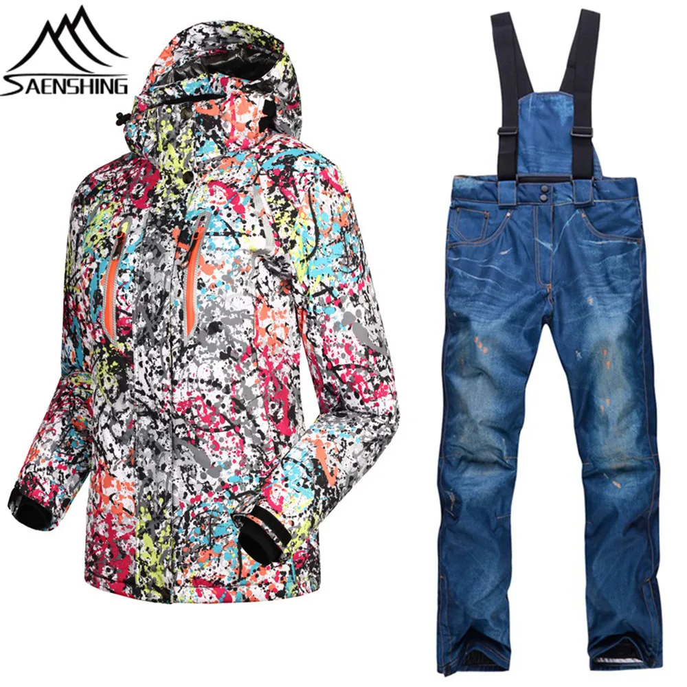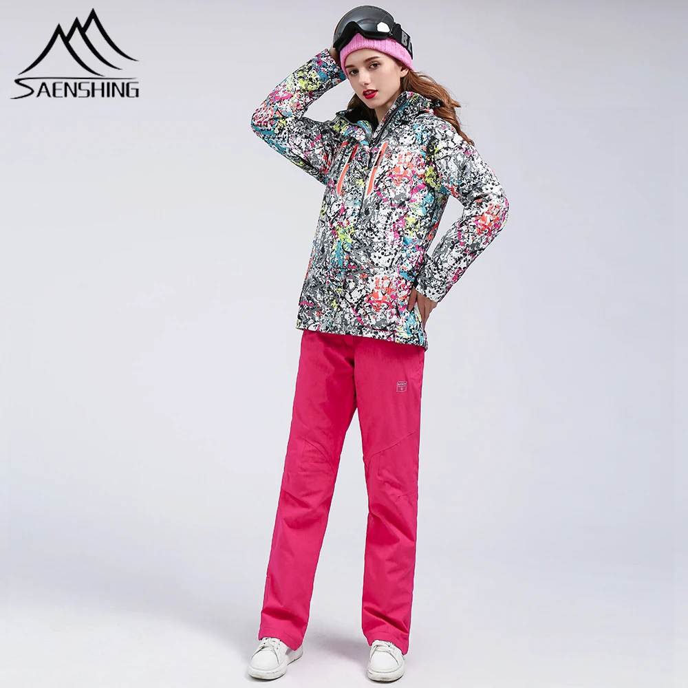 SAENSHING Ski Suit set Women Skiing Jacket + Pants Winter Thermal Thicken Snow Sportswear Waterproo